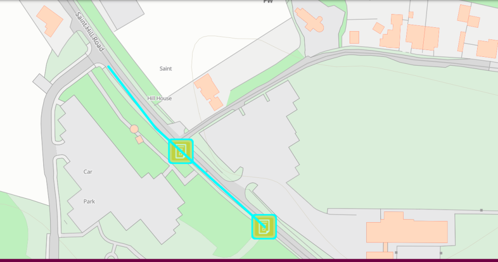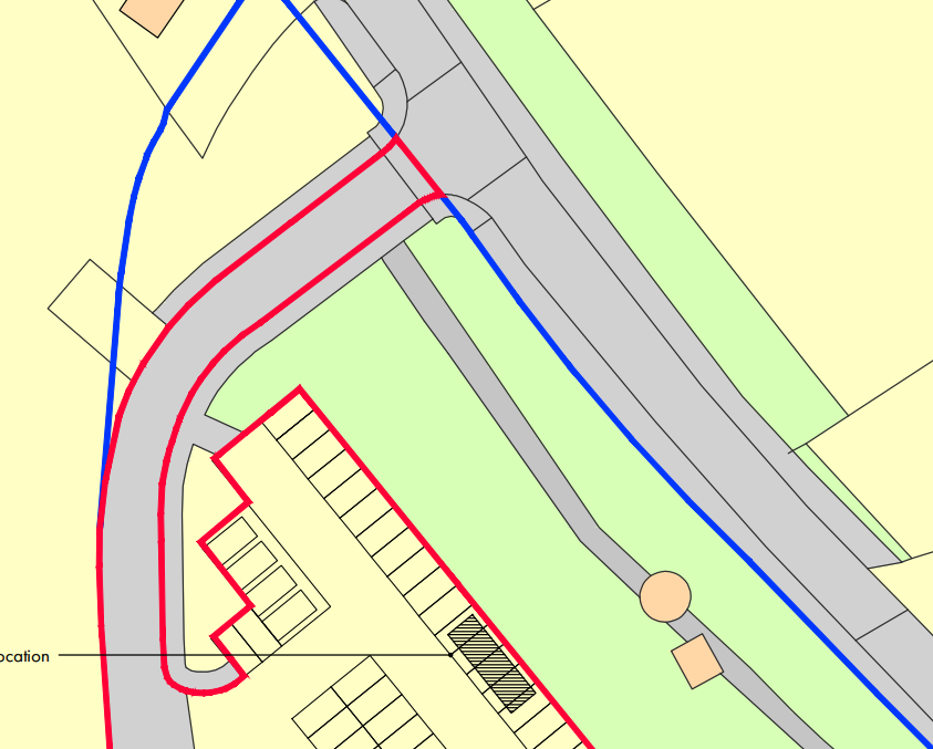 The map below is taken from a previous planning application submitted by the Church of Scientology, available via the Mid-Sussex District Council planning portal. It clearly shows the property boundary line, in relation to Saint Hill Road and the entrance to the car park.