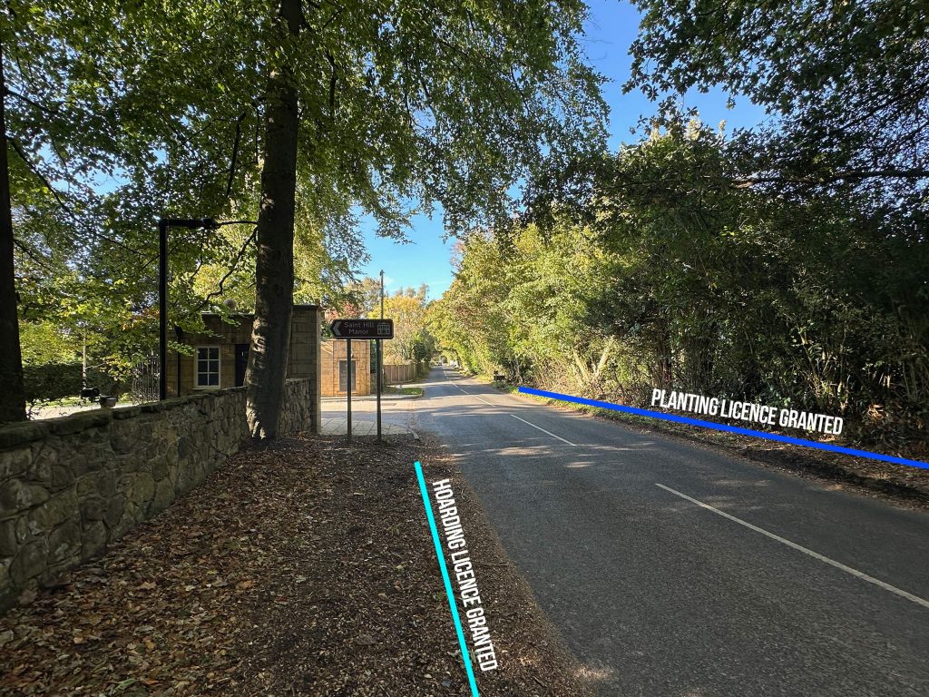 In addition to the hoarding licence, despite Scientology being ordered to remove concealed fencing and an illegal hedgerow on the opposite side of the road, West Sussex Highways have also granted a Planting Licence that would allow them to place a pre-approved species of hedge along the eastern side of the road, so long as it is a certain distance from the highway.